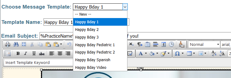 - To change templates, choose a different template from the drop down menu in the Message Template screen. When done, click SAVE & CLOSE