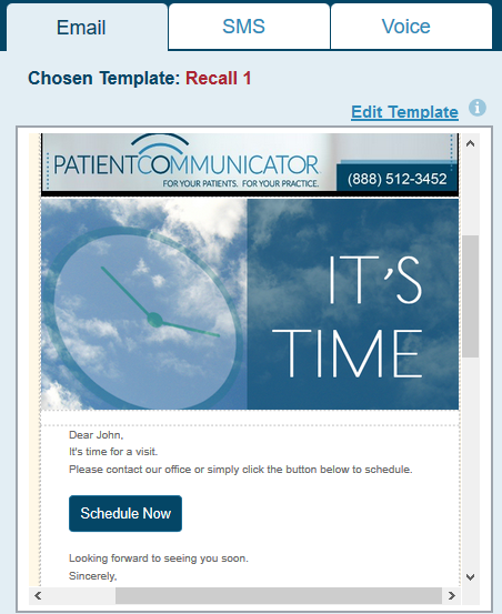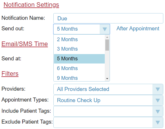 A message will never be sent to a patient that has a future scheduled appointment of the type you’ve selected in the notification, ensuring that a patient will only receive a reminder when there is a need to schedule a future recall appointment.