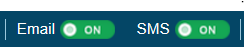 1. Message delivery method: Choose any combination of Email, SMS, or Voice (where available) by toggling the buttons to the ON (green) position.