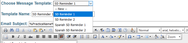 Note: Patient Communicator cautions against editing Family Message Templates due to extensive coding of the template for the Family Message ability.