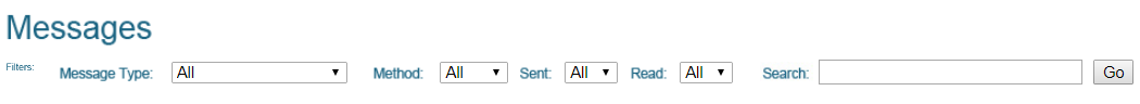 You can filter your results by Message Type, Method, Sent, or Read. It’s also possible to search for a specific patient by entering the patient name in the Search field and clicking Go.