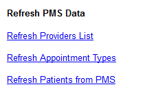 You will need to update any new providers and appointment types to Patient Communicator by clicking the Refresh hyperlinks on this screen.