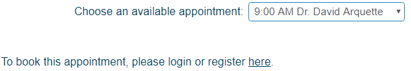 4. The patients will then select an appointment. If the patient has opted to view appointment availability before registering or logging in, they will now be directed to do so.
