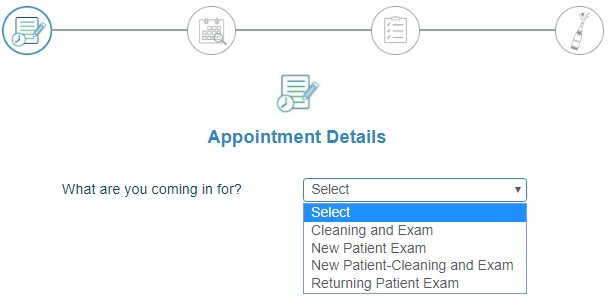 The patients will choose what they are coming in for based on your set up of Online Appointment Types in the Online Scheduler Settings.