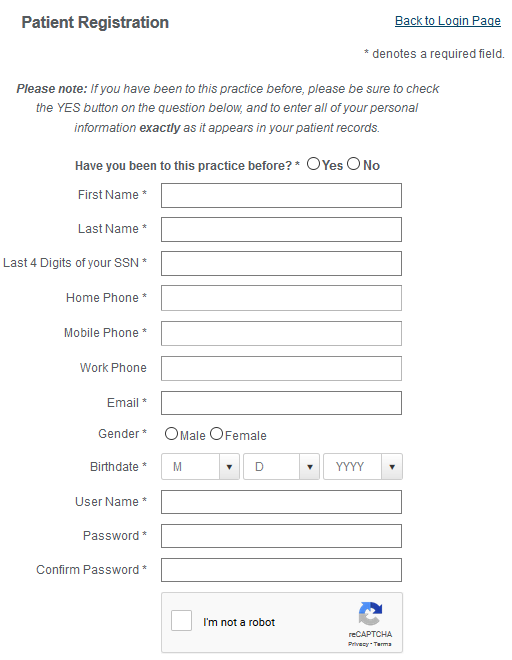 Your patients will be directed here by clicking on an email widget, a link sent within an sms text message, or accessed by some other web location using the link provided to your OLS Patient Site.