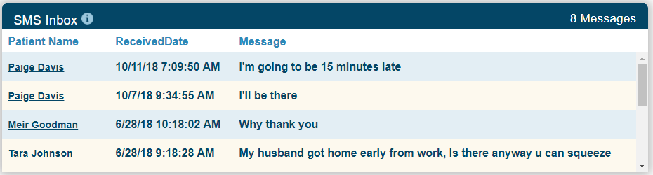 Note: The only exception is a reply text to a confirmation request which will appear in the Appointment Confirmations inbox.