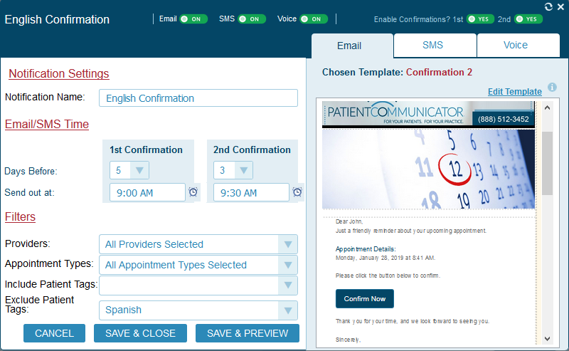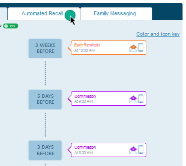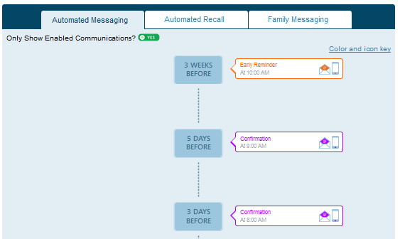 The Timeline displays all of the automated notifications that are set up in your Patient Communicator. This screen allows you to see