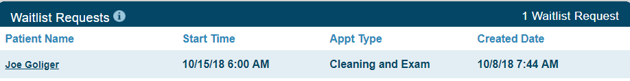 If you have opted to allow patients using the Online Scheduler (OLS) to wait list appointments, a Waitlist Appointments window will appear on the Homepage.