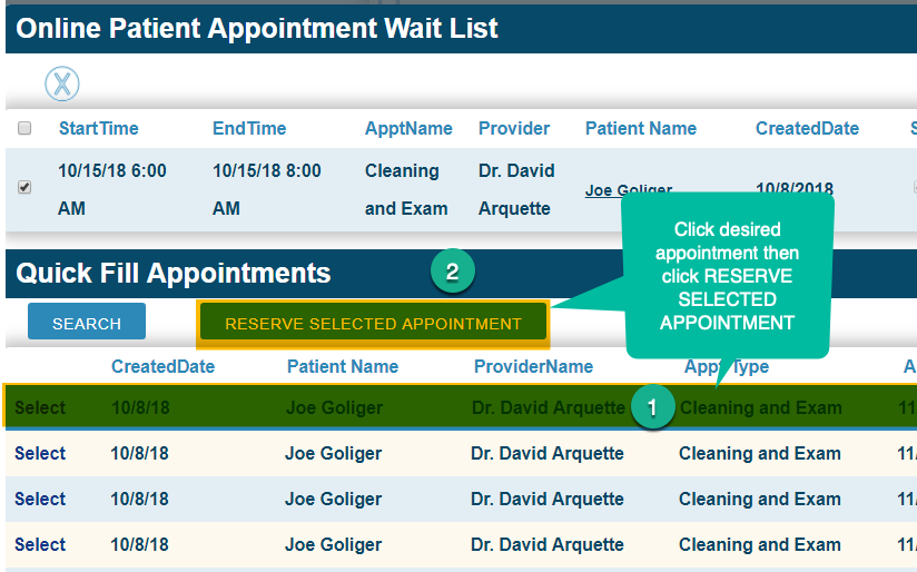 You may book the appointment by clicking on the the patient's desired appointment, then clicking on Reserve Selected Appointment.